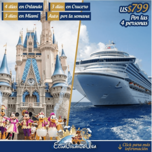 4 Días en Orlando, 3 días en Miami, 3 días de Crucero a las Bahamas , Auto rentado por una semana